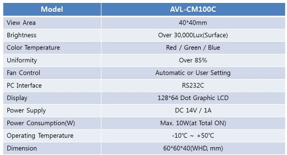 AVL-CM100C (for RGB)色温坐标检查器使用提供固定色温的标准光源。 不同的是,它可以表达很多颜色的温度 并且因为它具有RGB LED而进行坐标。