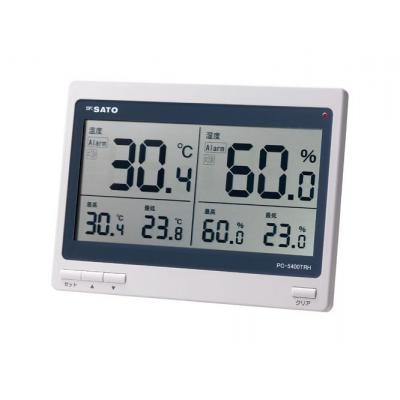 SATO佐藤计器数字温湿度计/1074-00数字温湿度计1074-00特点 ■ 易于阅读的大液晶显示屏(水平195mm,垂直92mm) ■ 始终显示最高/最低温度/湿度 ■ 具有报警功能 如果温度或湿度超出报警设定点,蜂鸣器和LED 将通知您。蜂鸣器可以打开/关闭。规格 产品编号 1074-00 产品名称 数字温湿度计 型号 PC-5400TRH 测量范围 温度 0.0 至 50.0°C 湿度 20.0 至 95.0%rh 测量精度 温度 ±1.0°C(0 至 40°C) ±1.5°C(除湿度 ±5%rh(20~30℃、40~70%rh) ±8%rh(上述以外) 分辨率 温