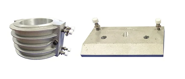 > 春日电机铝铸加热器该加热器是通过将护套加热器铸造到铝铸件中制成的。