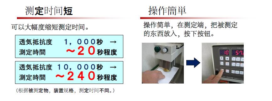 简单操作,短时间测定,各种各样的薄款材料的透气度