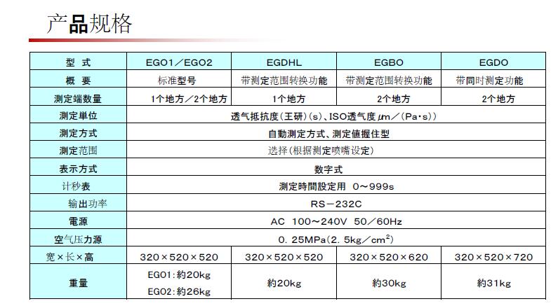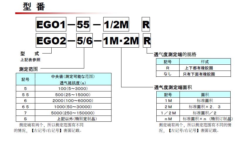 EGBO:带测定范围转换功能(测定端2个地方) EGDO :带透气度2个地方同时测定功能